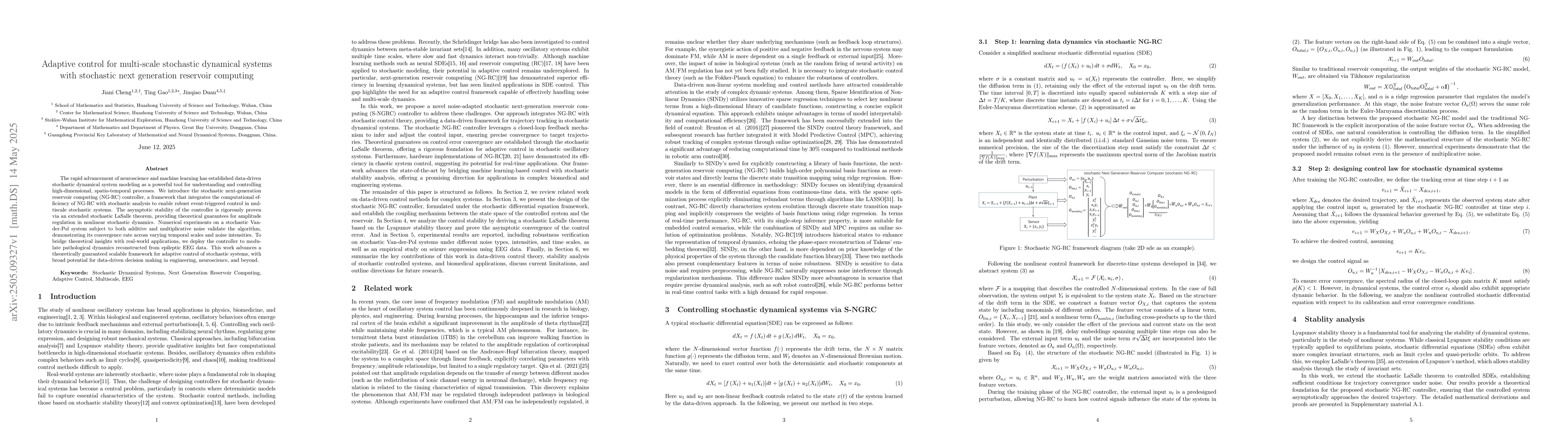 This work advances a theoretically guaranteed, scalable framework for adaptive control of stochastic systems, with broad potential applications in engineering, neuroscience, and data-driven decision-making.