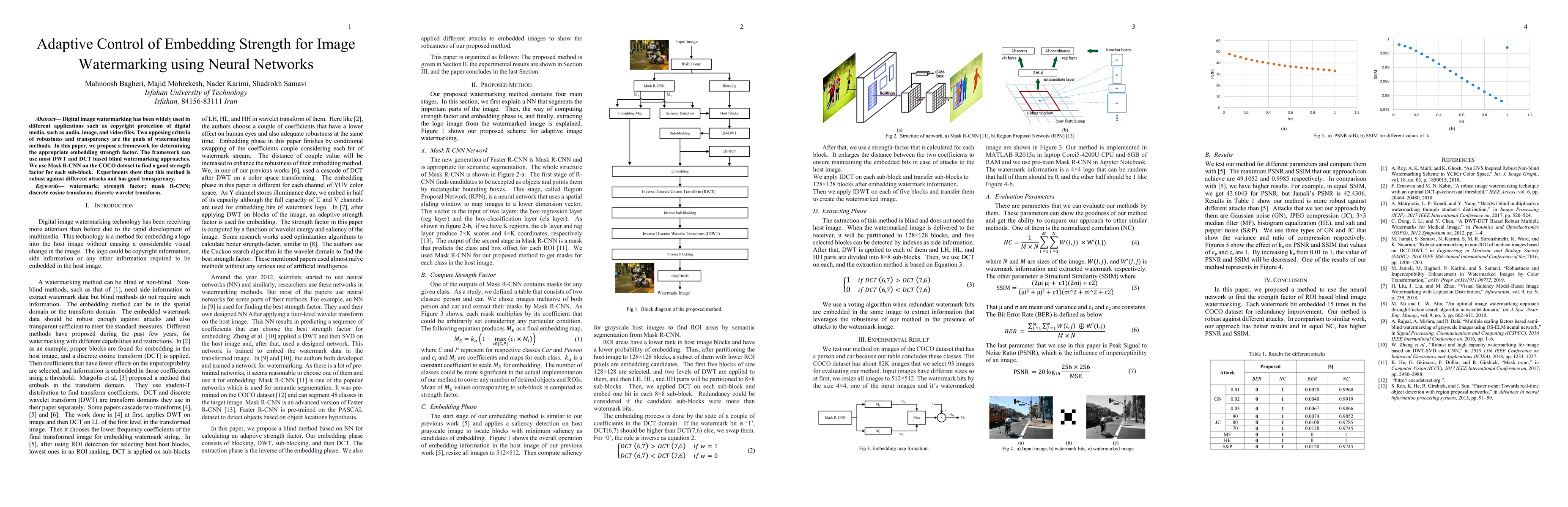 This paper proposes a neural network-based framework for adaptively determining the optimal embedding strength in image watermarking to balance robustness against attacks and transparency. Using Mask R-CNN on the COCO dataset, the method identifies the appropriate strength factor for each image sub-block, demonstrating effectiveness in both robustness and transparency.