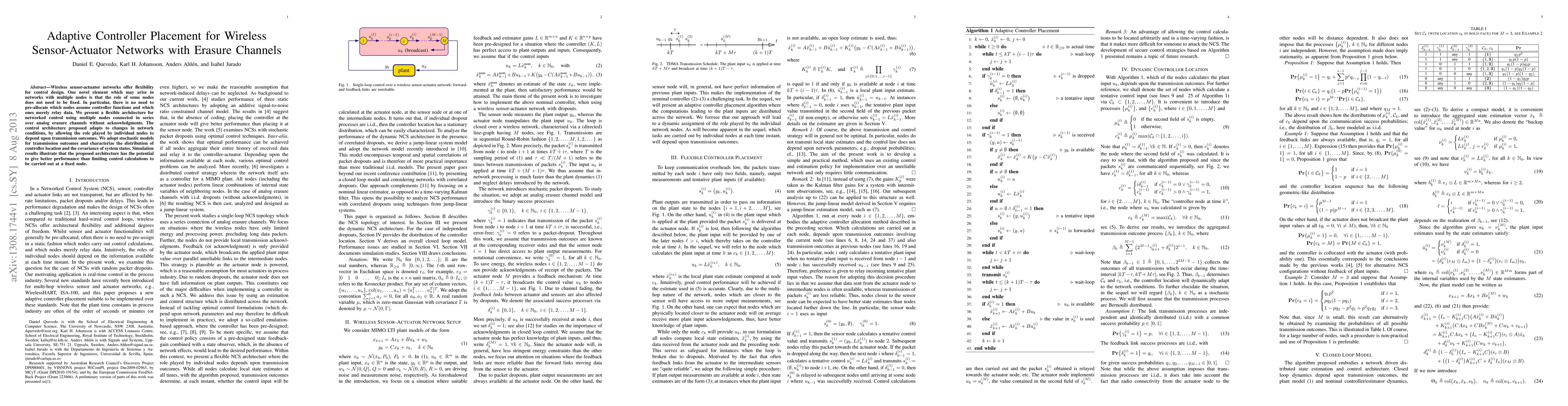 A new control architecture for wireless sensor-actuator networks adapts to changing network conditions by dynamically assigning node roles based on transmission outcomes, potentially improving performance over fixed controller placement.