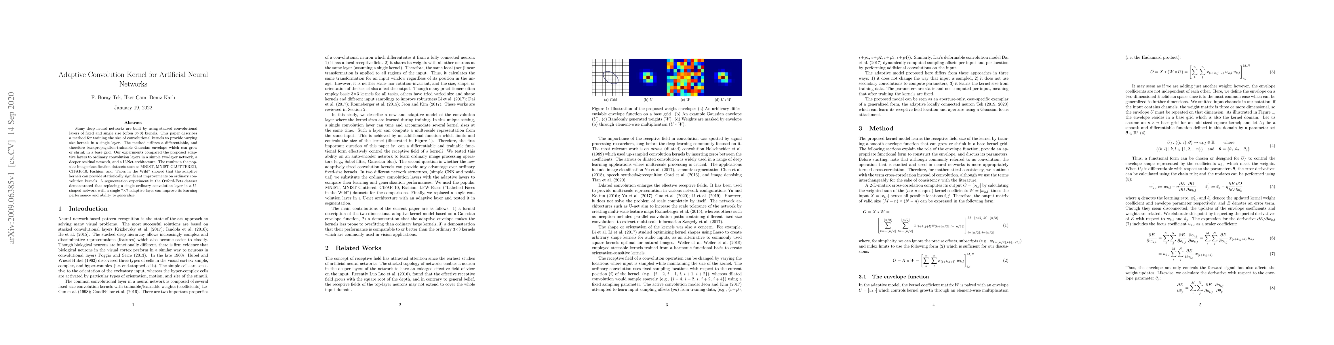A new method for training adaptive convolution kernels in artificial neural networks improves performance on image classification tasks and segmentation experiments with statistically significant results.