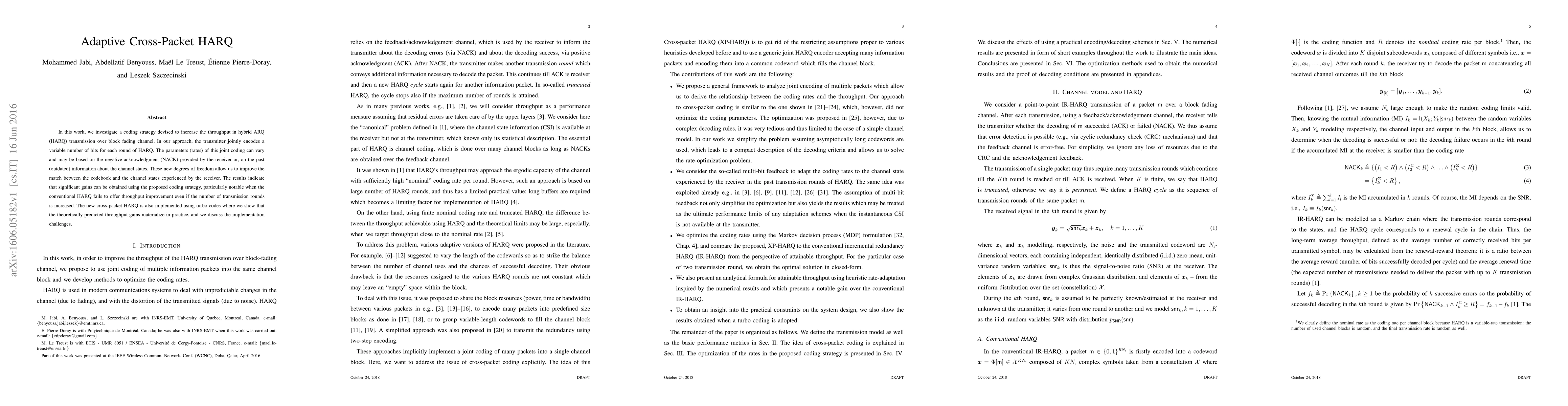 Researchers developed a new coding strategy for hybrid ARQ transmission that improves throughput in block fading channels. The approach uses joint encoding of variable numbers of bits per round, achieving significant gains over conventional HARQ methods.
