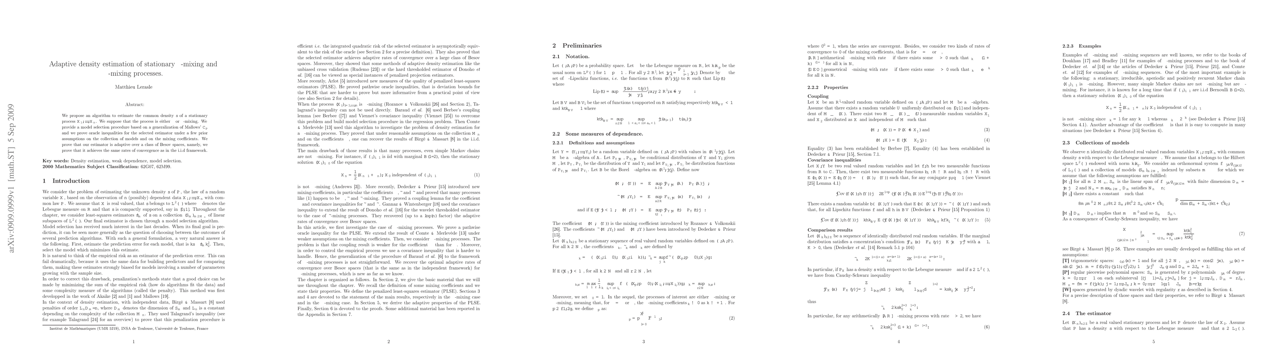 The paper proposes an algorithm to estimate the common density of a stationary process, achieving adaptive rates over Besov spaces and offering a model selection procedure based on Mallows' $C_p$.