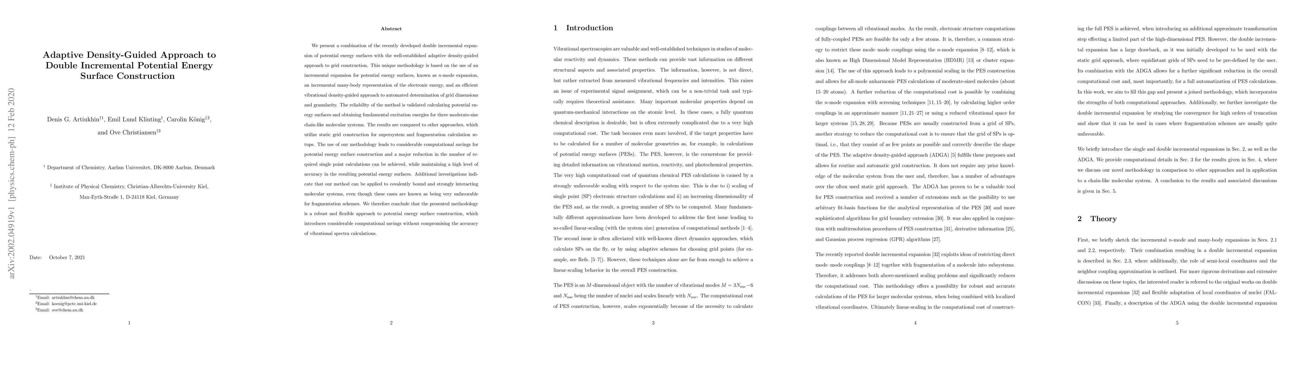 This paper introduces an adaptive density-guided approach combining double incremental potential energy surface expansion with grid construction, achieving significant computational savings and high accuracy in potential energy surface calculations for moderate-size molecular systems, while also showing promise for strongly interacting systems.