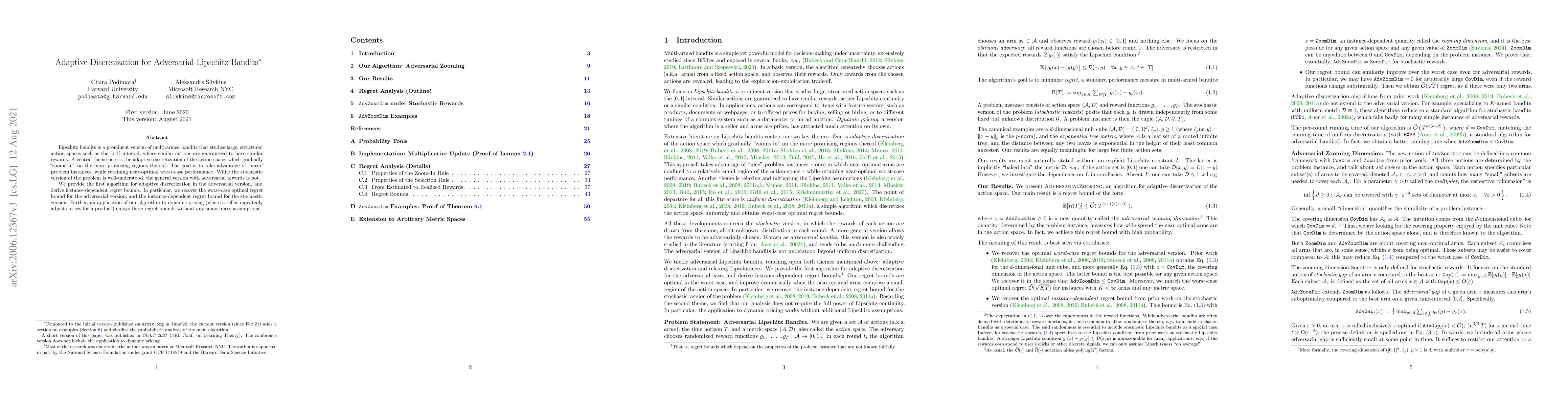 This paper introduces an adaptive discretization algorithm for adversarial Lipschitz bandits, aiming to optimize performance in structured action spaces. The proposed algorithm achieves near-optimal regret bounds for both adversarial and stochastic versions, with applications to dynamic pricing scenarios.