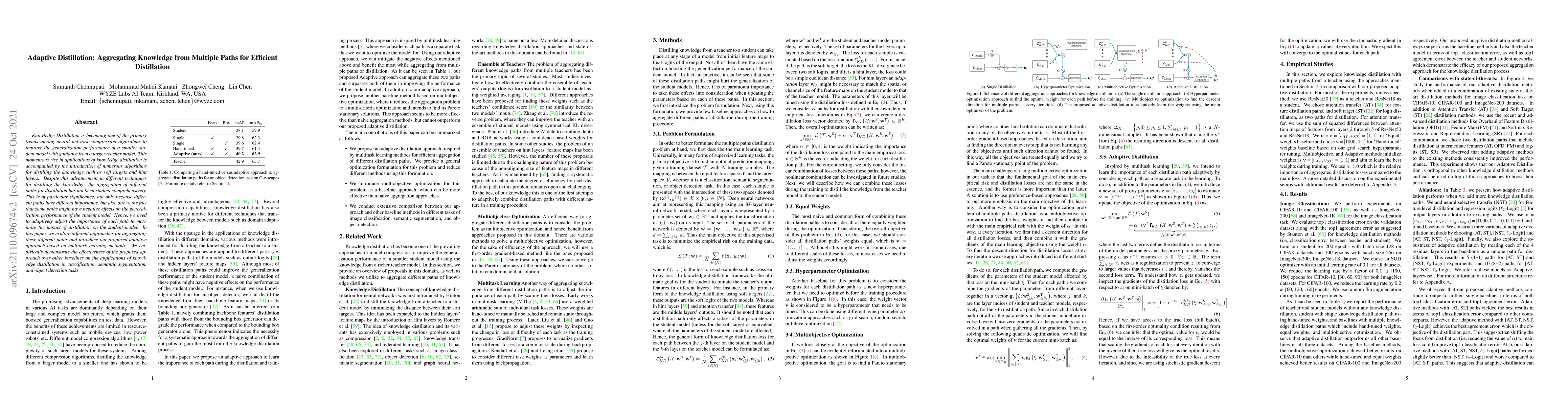 This paper proposes adaptive distillation methods to aggregate knowledge from multiple paths in neural networks, addressing the challenge of varying path importance and potential negative effects. The authors introduce an adaptive approach based on multitask learning, demonstrating its effectiveness over baselines in classification, semantic segmentation, and object detection tasks.