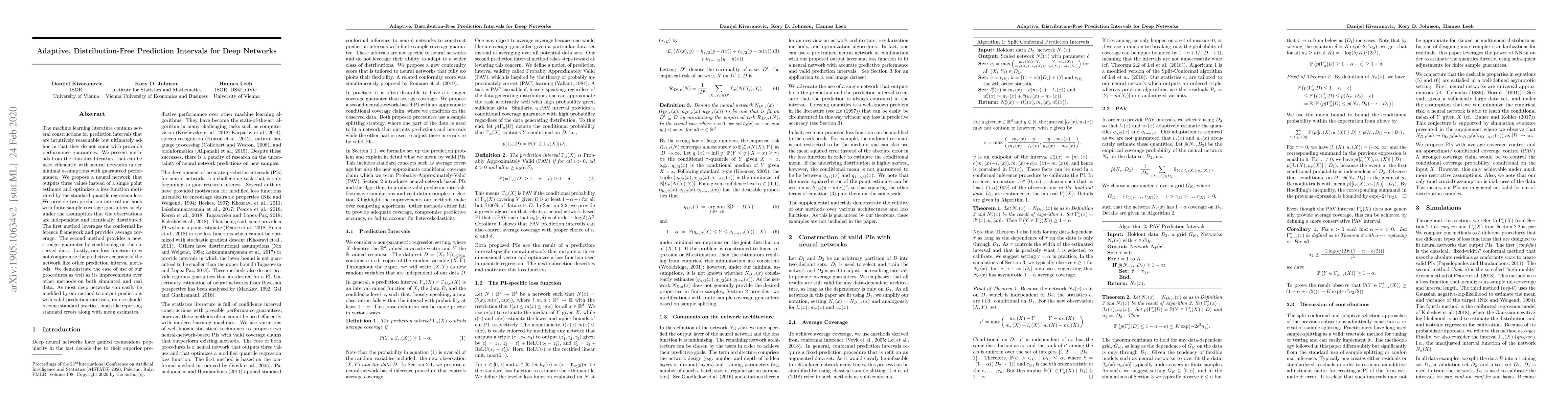 This paper proposes a method for generating adaptive, distribution-free prediction intervals for deep neural networks using statistical techniques, ensuring finite sample coverage guarantees without compromising predictive accuracy. The authors demonstrate improved performance over existing methods on both simulated and real datasets.
