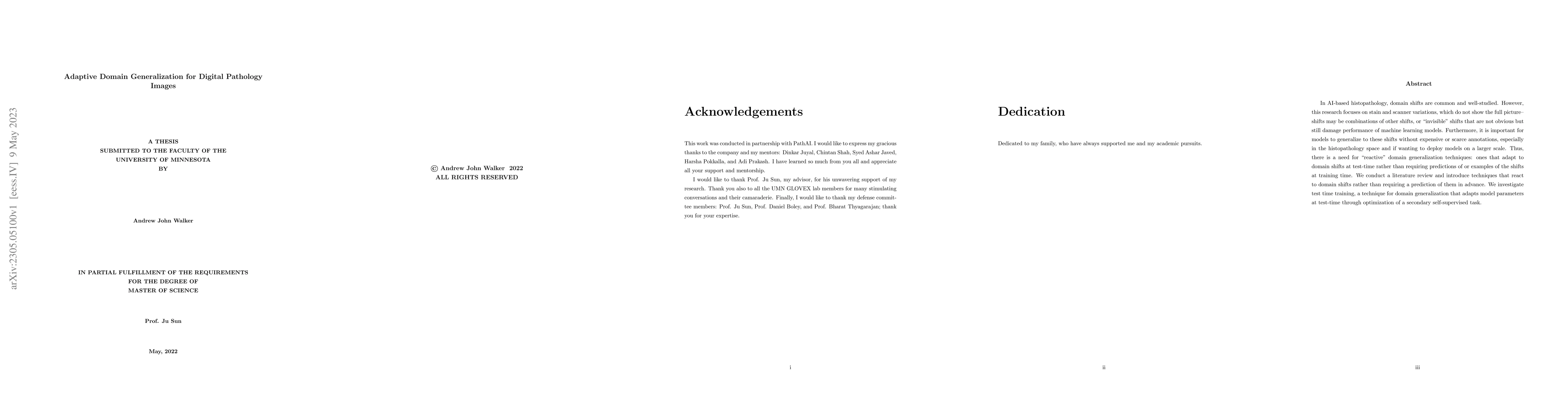 This paper explores adaptive domain generalization techniques for AI-based histopathology, focusing on unseen and complex shifts in stain and scanner variations. It proposes test-time training as a method to adapt model parameters dynamically during inference, without requiring prior knowledge of domain shifts.