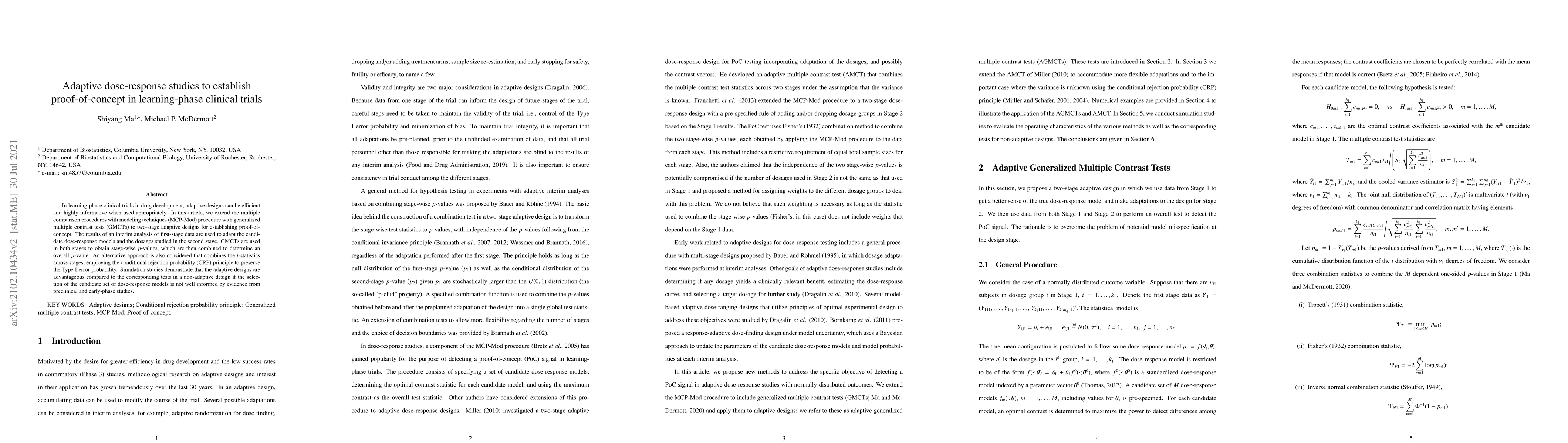 This paper proposes adaptive dose-response study designs for learning-phase clinical trials, utilizing MCP-Mod and GMCTs to refine dose-response models and dosages based on interim analysis results. Simulation studies show that these adaptive designs outperform non-adaptive designs when preclinical evidence is limited.