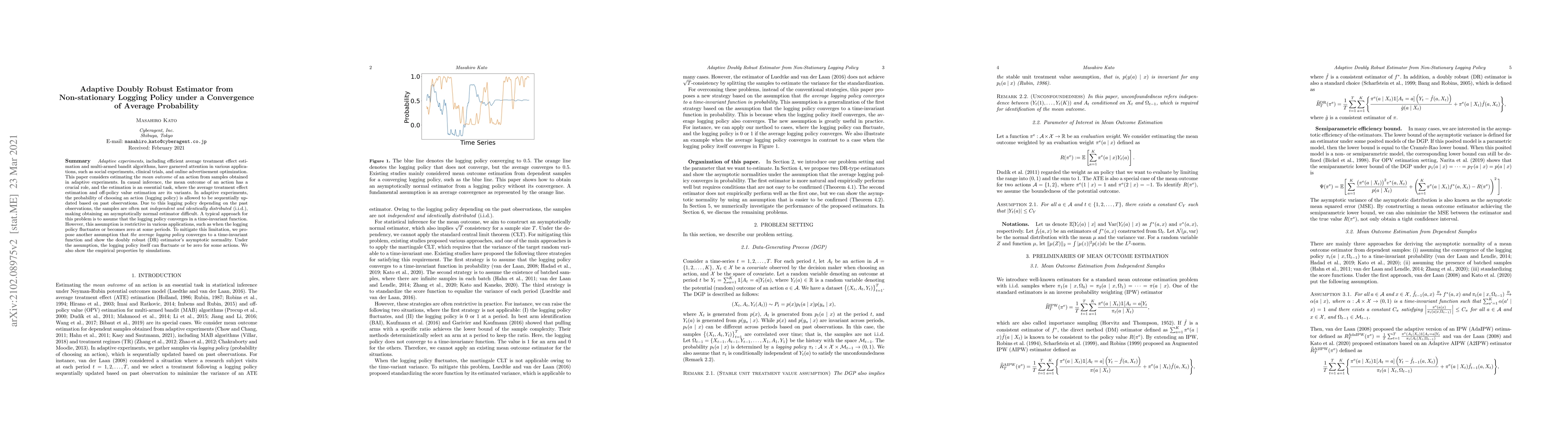 This paper proposes an adaptive doubly robust estimator for estimating the mean outcome of an action in adaptive experiments where the logging policy may not be strictly stationary. It demonstrates asymptotic normality under the assumption that the average logging policy converges, allowing for more flexible and realistic applications compared to traditional methods.