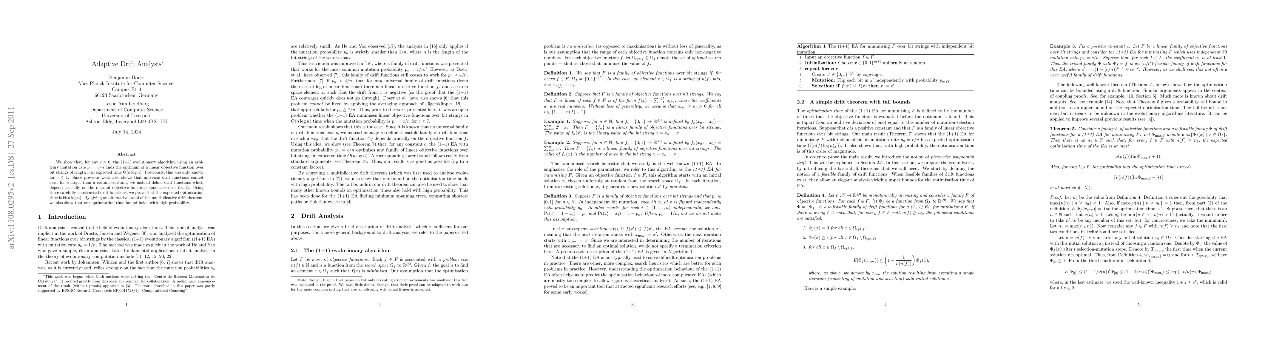 We show that, for any c>0, the (1+1) evolutionary algorithm using an arbitrary mutation rate p_n = c/n finds the optimum of a linear objective function over bit strings of length n in expected time Theta(n log n). Previously, this was only known for c at most 1. Since previous work also shows that universal drift functions cannot exist for c larger than a certain constant, we instead define drift functions which depend crucially on the relevant objective functions (and also on c itself). Using these carefully-constructed drift functions, we prove that the expected optimisation time is Theta(n log n). By giving an alternative proof of the multiplicative drift theorem, we also show that our optimisation-time bound holds with high probability.