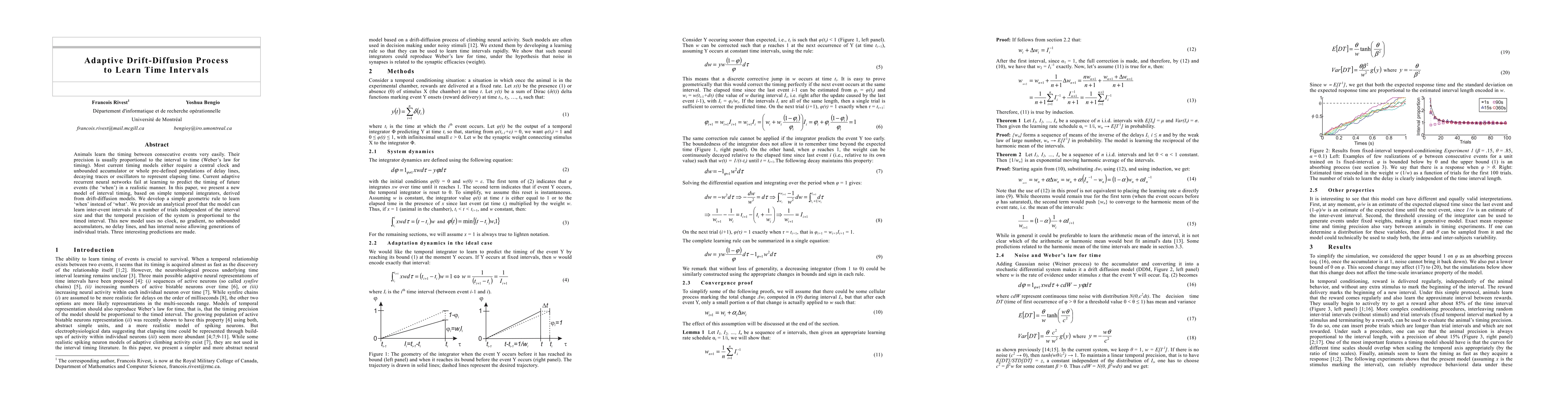 This paper introduces a novel adaptive drift-diffusion process for learning inter-event intervals without relying on traditional timing mechanisms. It demonstrates the model's ability to predict future event timings with precision proportional to the interval size, making it a promising alternative to existing timing models.