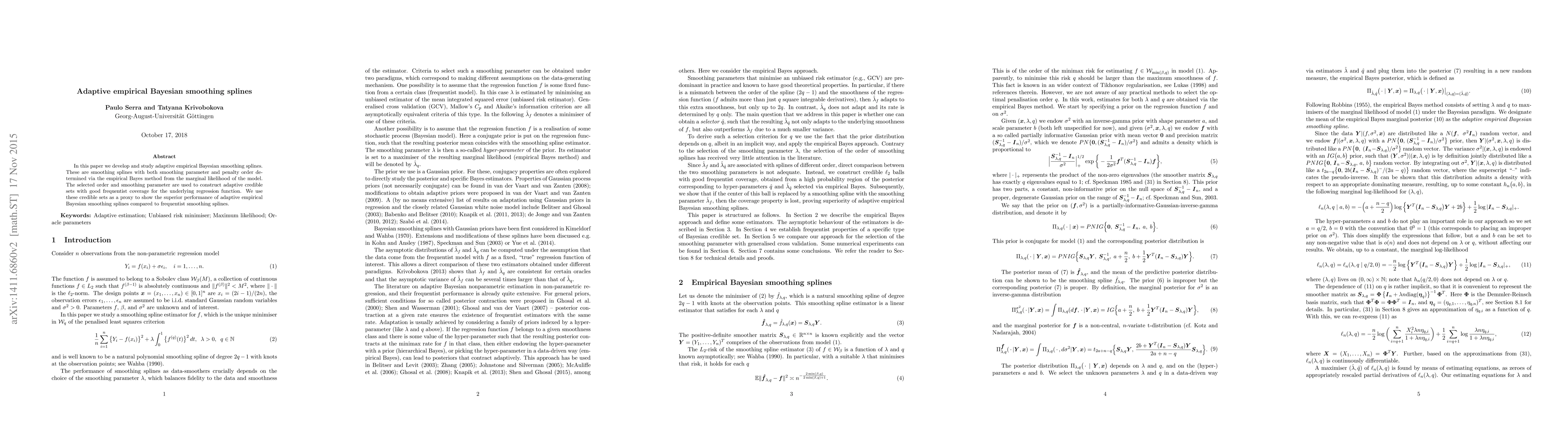 This paper introduces adaptive empirical Bayesian smoothing splines that determine the smoothing parameter and penalty order via empirical Bayes methods. The method constructs adaptive credible sets with strong frequentist coverage, demonstrating superior performance over traditional frequentist smoothing splines.