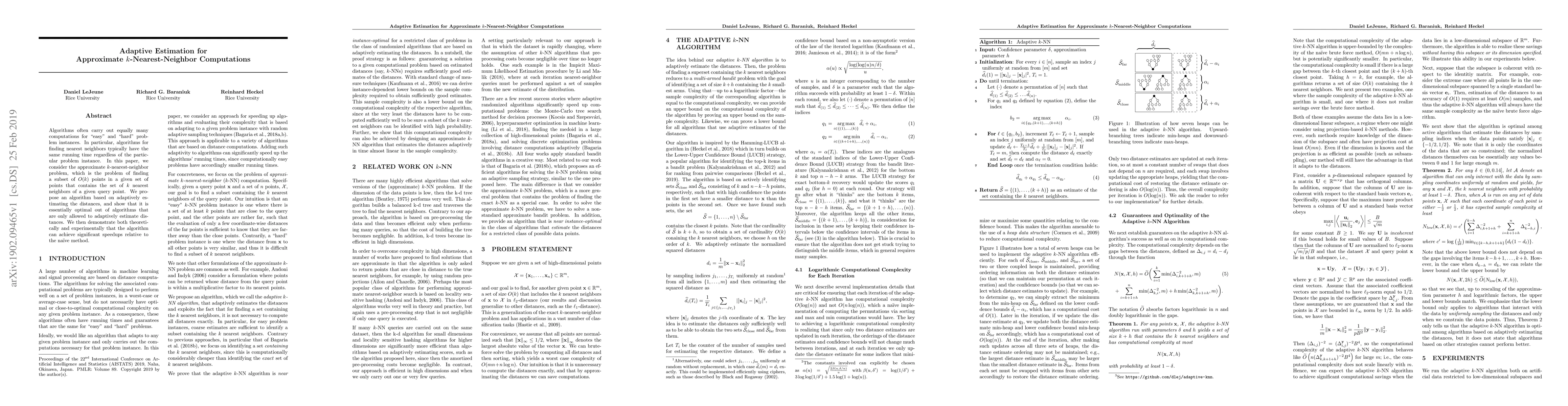 This paper proposes an adaptive algorithm for approximate k-nearest-neighbor computations, which dynamically estimates distances to optimize computation. The algorithm achieves significant speedups compared to traditional methods, both theoretically and experimentally.