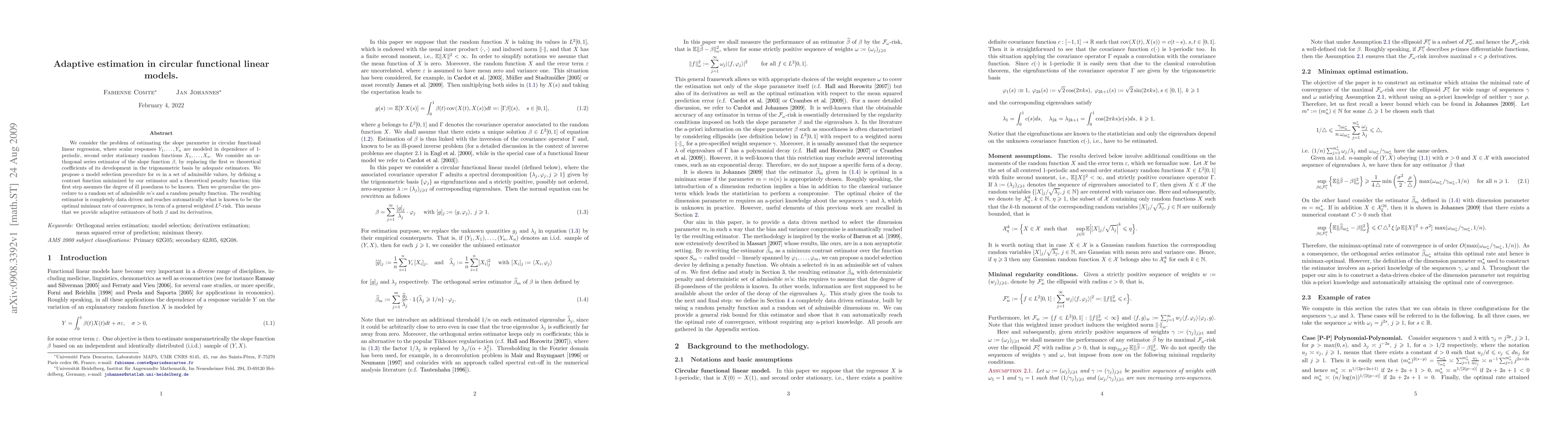 This paper proposes adaptive estimation methods for circular functional linear models, achieving optimal minimax rate of convergence without prior knowledge of the degree of ill-posedness, making it a data-driven approach.