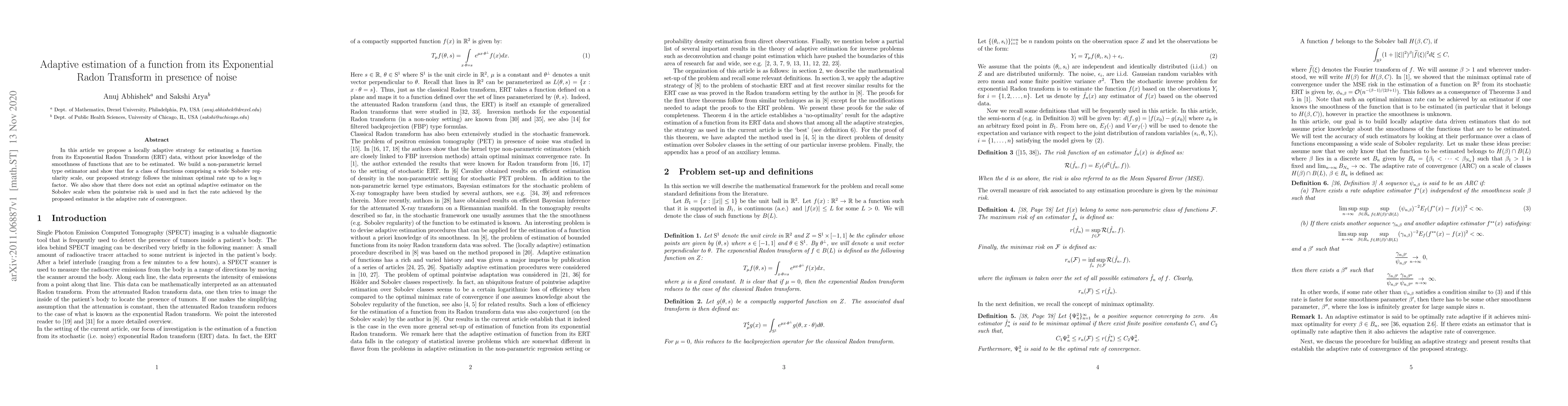 In this article we propose a locally adaptive strategy for estimating a function from its Exponential Radon Transform (ERT) data, without prior knowledge of the smoothness of functions that are to be estimated. We build a non-parametric kernel type estimator and show that for a class of functions comprising a wide Sobolev regularity scale, our proposed strategy follows the minimax optimal rate up to a $\log{n}$ factor. We also show that there does not exist an optimal adaptive estimator on the Sobolev scale when the pointwise risk is used and in fact the rate achieved by the proposed estimator is the adaptive rate of convergence.