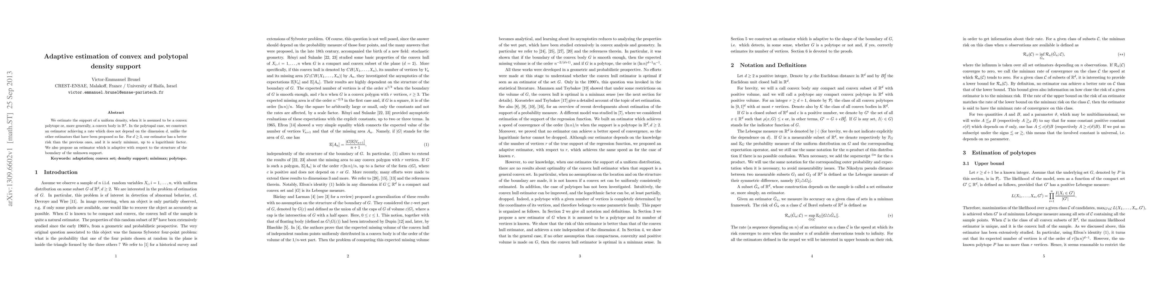 Researchers developed an adaptive estimator for convex polytopal support that achieves a rate independent of dimension $d$, outperforming previous estimators in risk and nearly achieving minimax performance.