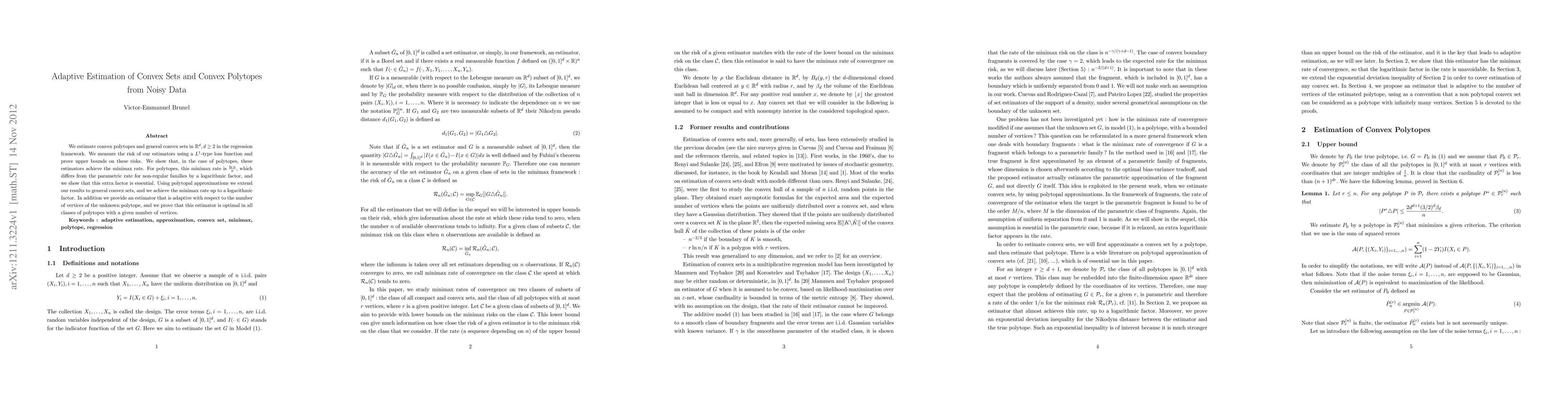 This paper develops adaptive estimators for convex polytopes and general convex sets in high-dimensional spaces, achieving minimax rates up to logarithmic factors. It proves that the logarithmic factor is essential and provides an adaptive estimator optimal for polytopes with a given number of vertices.
