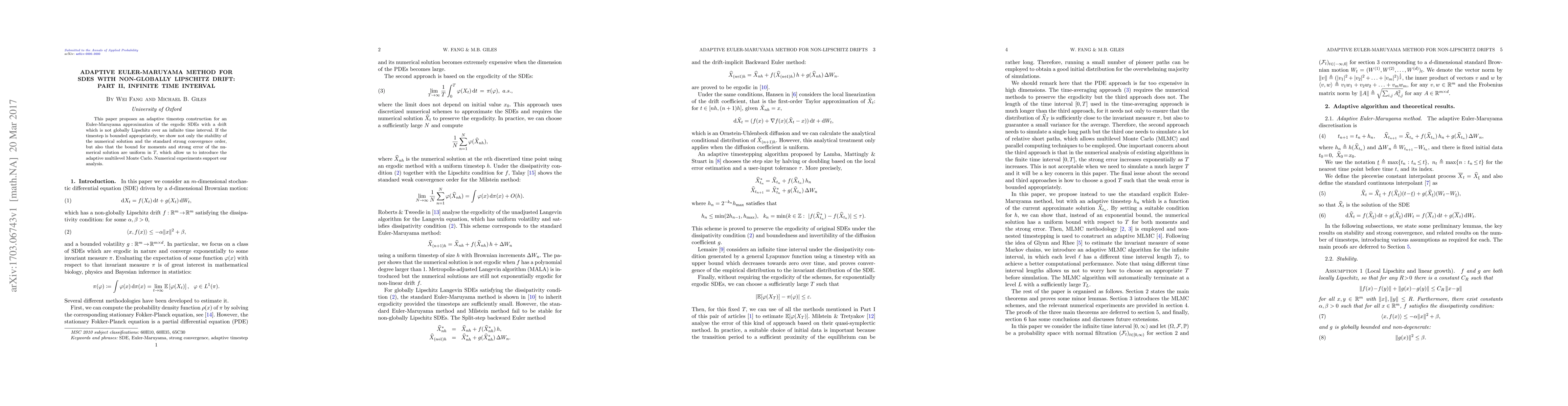 This paper develops an adaptive Euler-Maruyama method for ergodic stochastic differential equations with non-globally Lipschitz drifts over infinite time intervals, demonstrating stability, convergence, and uniform bounds for moments and errors, supported by numerical experiments.