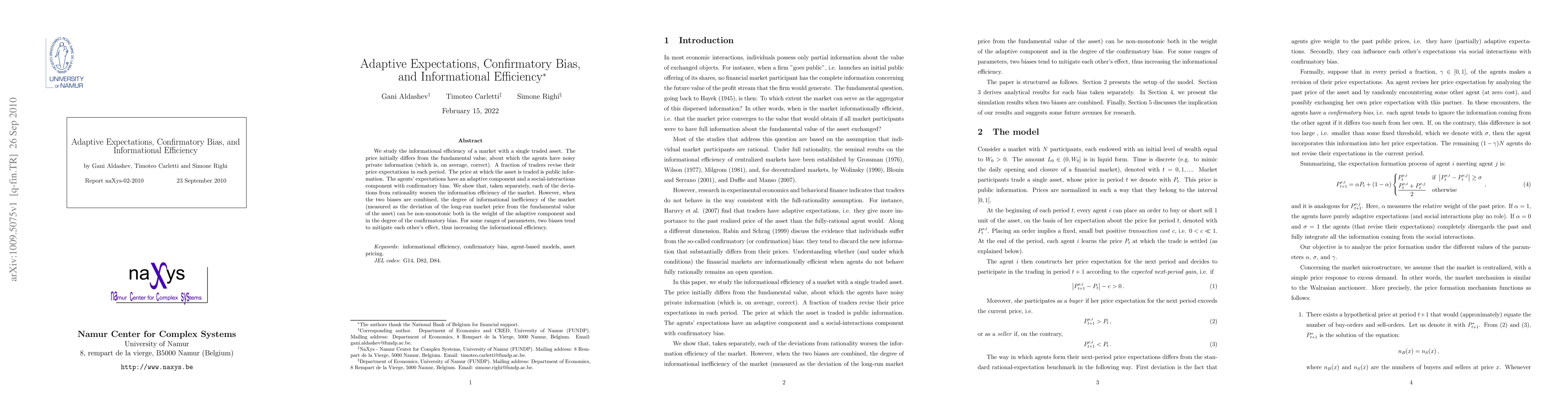 This paper explores a market with adaptive expectations and confirmatory bias, showing that while each bias individually worsens informational efficiency, the combination of both can lead to a non-monotonic relationship, sometimes improving efficiency by mitigating each other's effects.