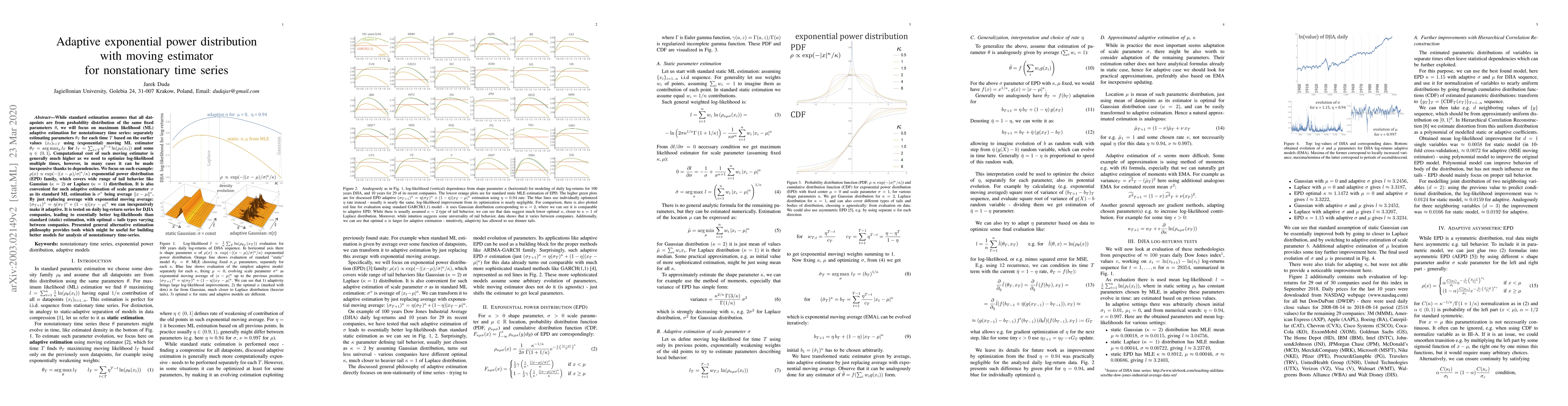 This paper proposes an adaptive maximum likelihood estimation method for nonstationary time series using an exponential moving estimator. It focuses on the exponential power distribution family, adapting the scale parameter through an exponential moving average, and demonstrates improved performance on daily log-return series for DJIA companies compared to static estimation.