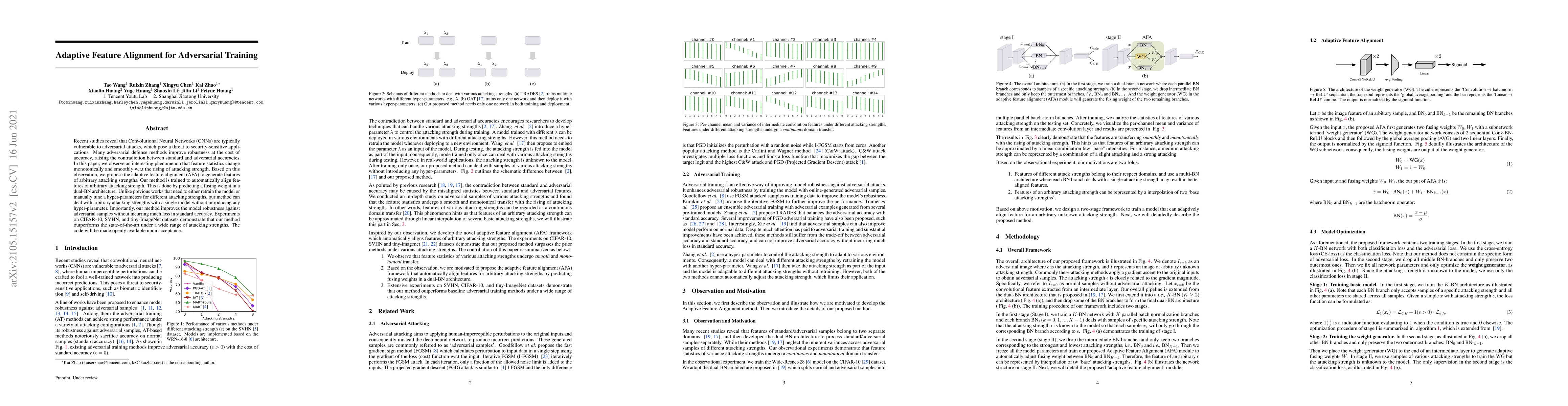 A new method called Adaptive Feature Alignment (AFA) improves neural network robustness to adversarial attacks without sacrificing accuracy, working with arbitrary attacking strengths using a single model.