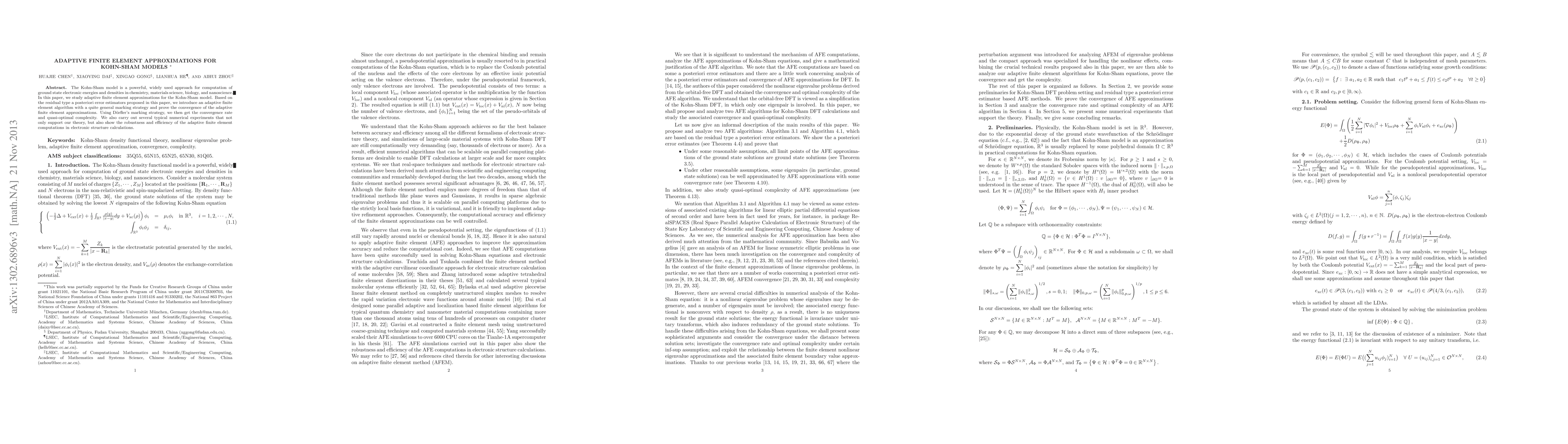 This paper develops adaptive finite element methods for solving Kohn-Sham equations, which are essential for computing ground state electronic energies and densities. It proposes a convergence-proof adaptive algorithm with a general marking strategy and demonstrates its efficiency and robustness through numerical experiments.