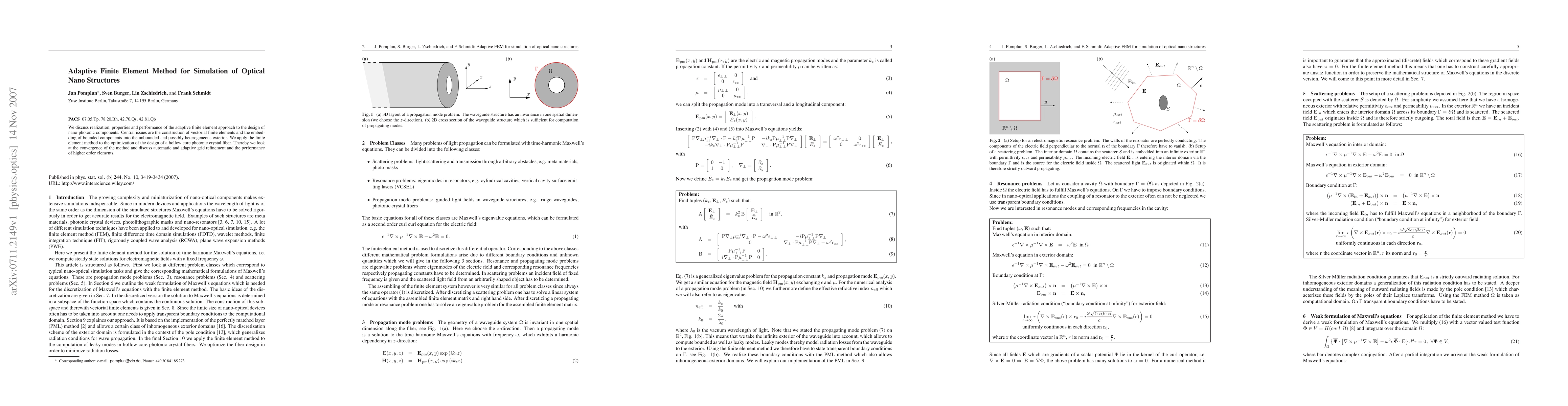 This paper explores the adaptive finite element method for simulating optical nano structures, focusing on vectorial finite elements and grid refinement techniques. It demonstrates the method's application in optimizing a hollow core photonic crystal fiber, analyzing convergence and performance of higher-order elements.