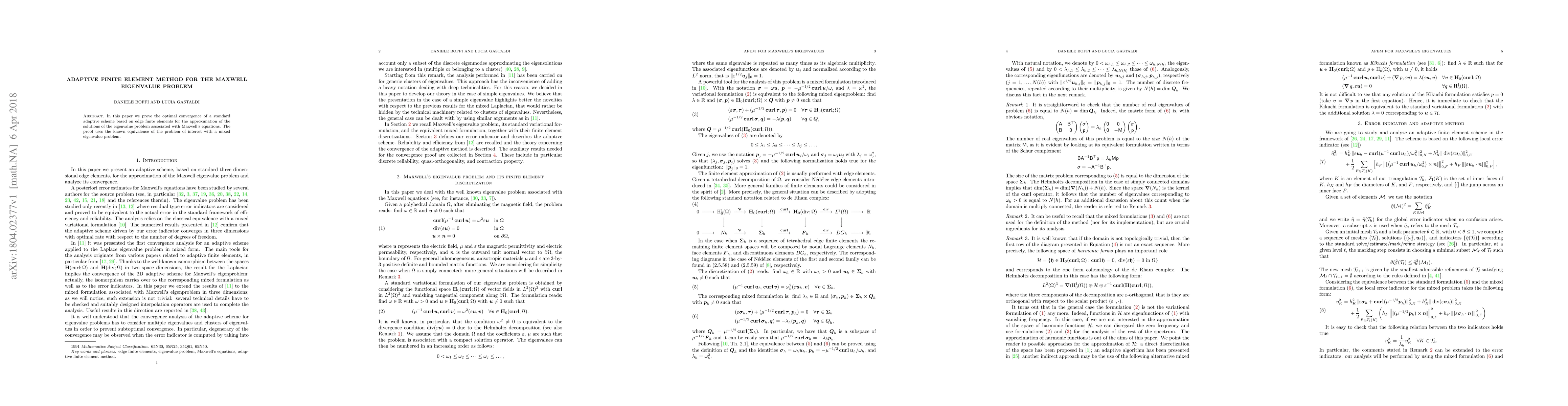 In this paper we prove the optimal convergence of a standard adaptive scheme based on edge finite elements for the approximation of the solutions of the eigenvalue problem associated with Maxwell's equations. The proof uses the known equivalence of the problem of interest with a mixed eigenvalue problem.