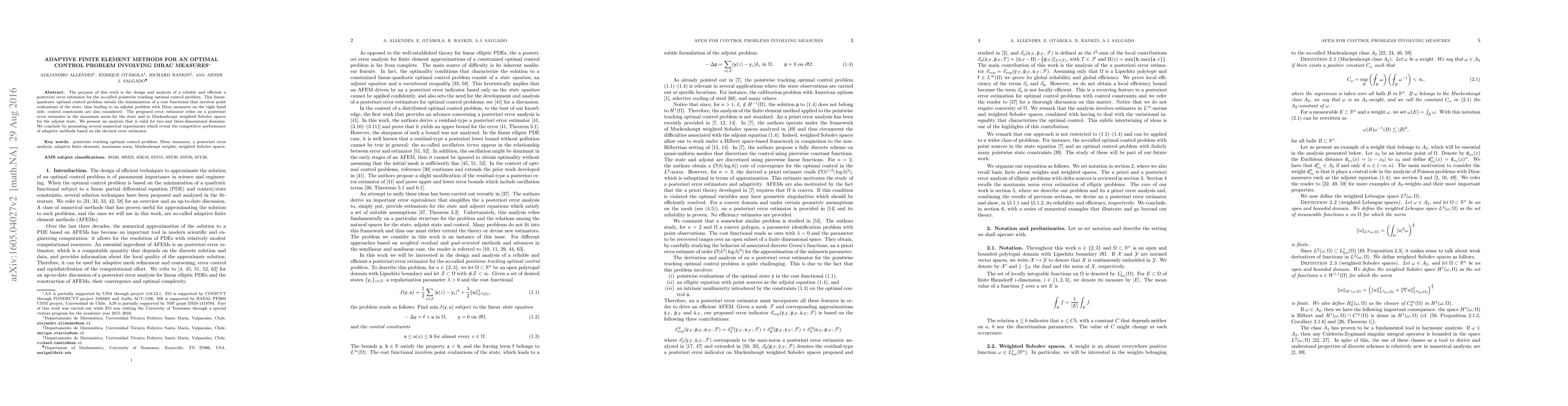 This paper develops an adaptive finite element method for an optimal control problem with Dirac measures, proposing a reliable a posteriori error estimator for pointwise tracking. Numerical experiments demonstrate the competitive performance of adaptive methods based on the new error estimator.