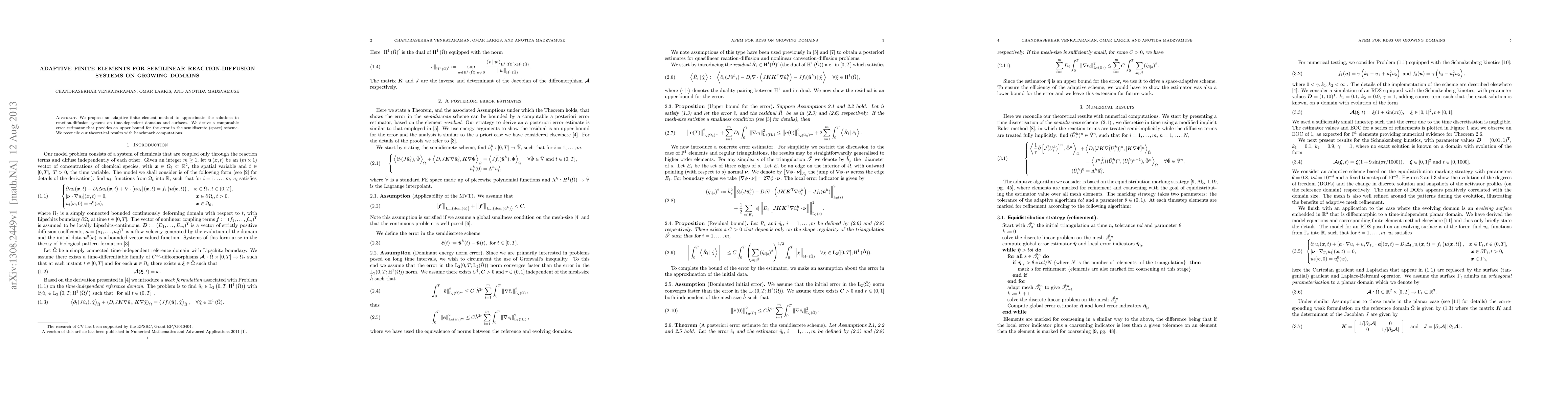 This paper introduces an adaptive finite element method for solving semilinear reaction-diffusion systems on evolving domains, providing a computable error estimator and validating the approach through benchmark computations. Theoretical results are supported by practical simulations.