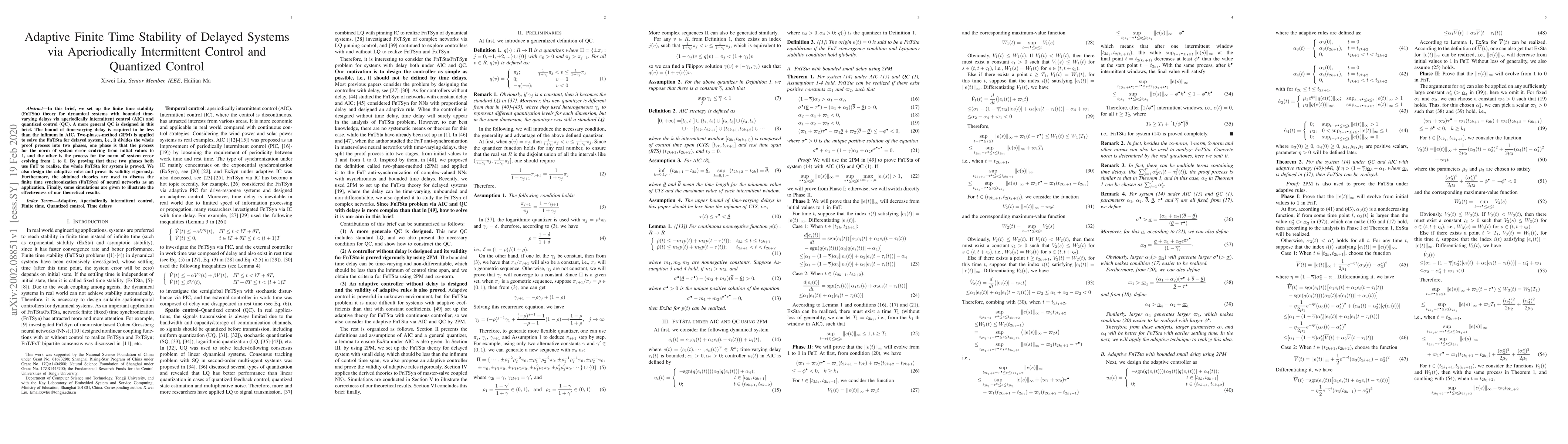 This paper develops adaptive finite time stability theory for systems with time-varying delays using aperiodically intermittent control and quantized control. It employs a two-phase method to prove the finite time stability and synchronization of neural networks, supported by rigorous adaptive rules and simulation results.