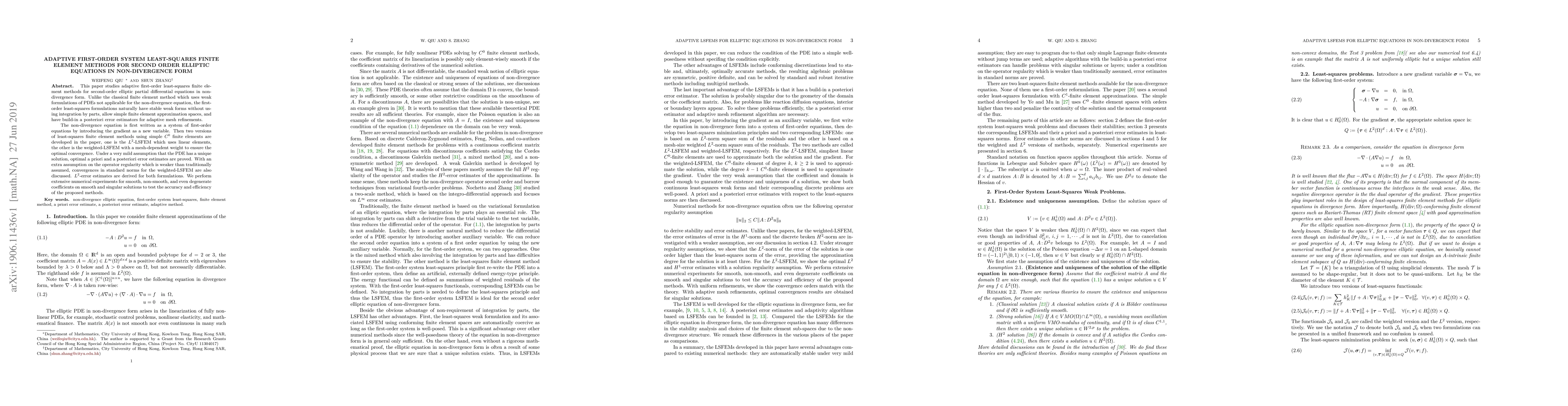 This paper develops adaptive first-order least-squares finite element methods for solving second-order elliptic PDEs in non-divergence form, introducing the gradient as a new variable. It presents two versions: $L^2$-LSFEM and weighted-LSFEM, proving optimal error estimates and discussing convergence under mild assumptions.