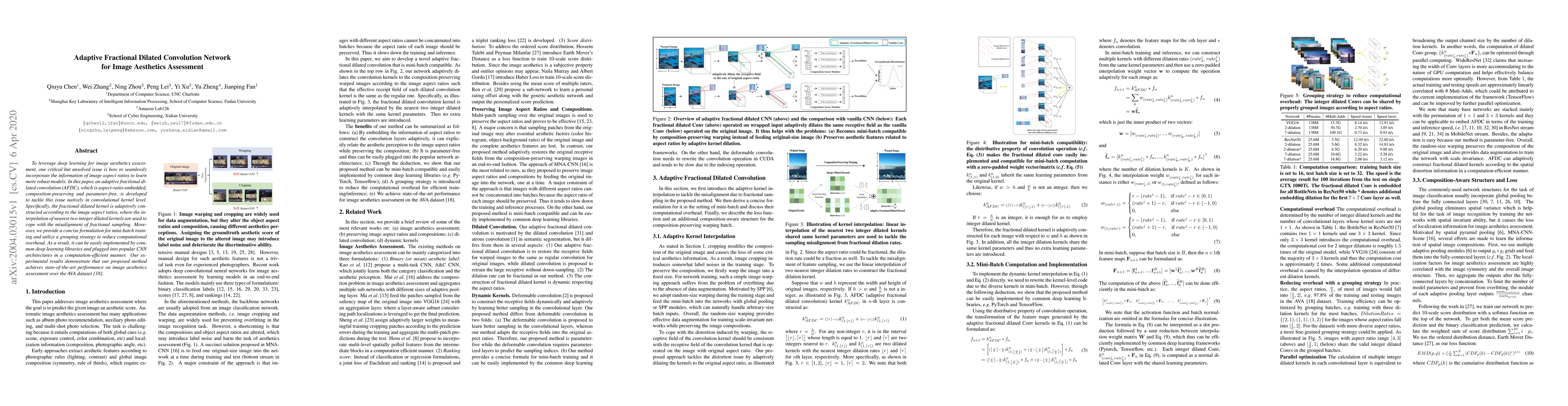 This paper proposes an adaptive fractional dilated convolution network to enhance image aesthetics assessment by incorporating image aspect ratios into convolutional kernels. The method adaptively constructs fractional dilated kernels, enabling robust learning and achieving state-of-the-art performance on the AVA dataset.