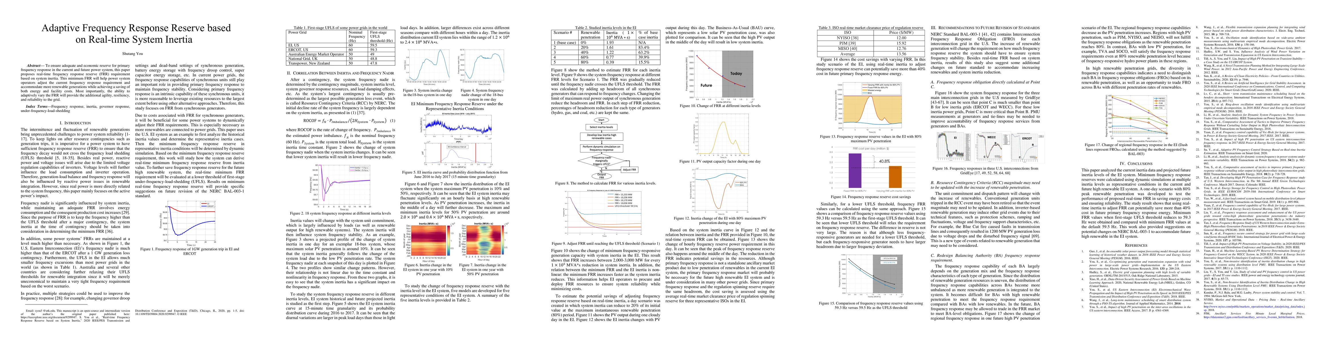 This paper proposes a real-time system inertia-based frequency response reserve requirement to ensure grid stability and reliability while accommodating renewable energy sources. The adaptive FRR will provide agility and cost savings for power system operators.