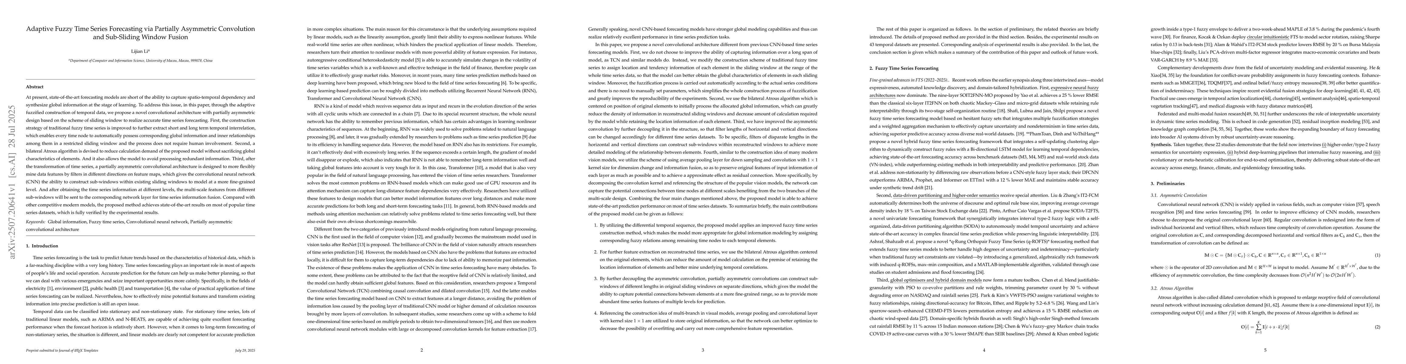 This paper proposes a novel time series forecasting method using adaptive fuzzy time series construction, a partially asymmetric convolution architecture, and a sub-sliding window fusion strategy.