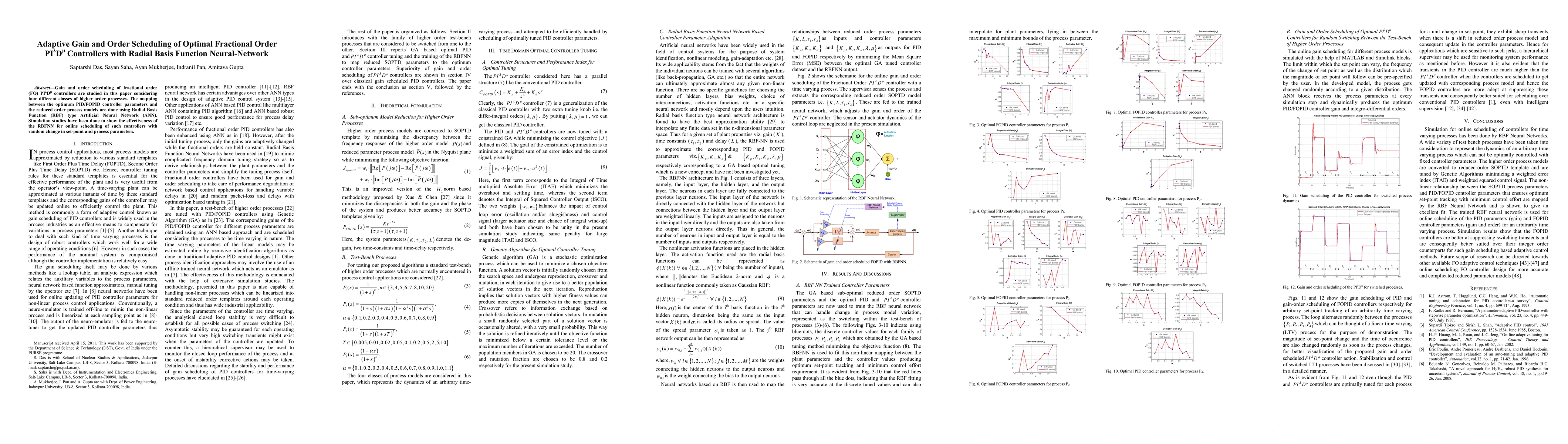 This paper investigates adaptive gain and order scheduling for fractional order PIλDμ controllers, employing Radial Basis Function Neural Networks (RBFNN) to map optimal PID/FOPID parameters to reduced order process models. Simulation results demonstrate the effectiveness of RBFNN in online scheduling under varying set-point and process parameters.