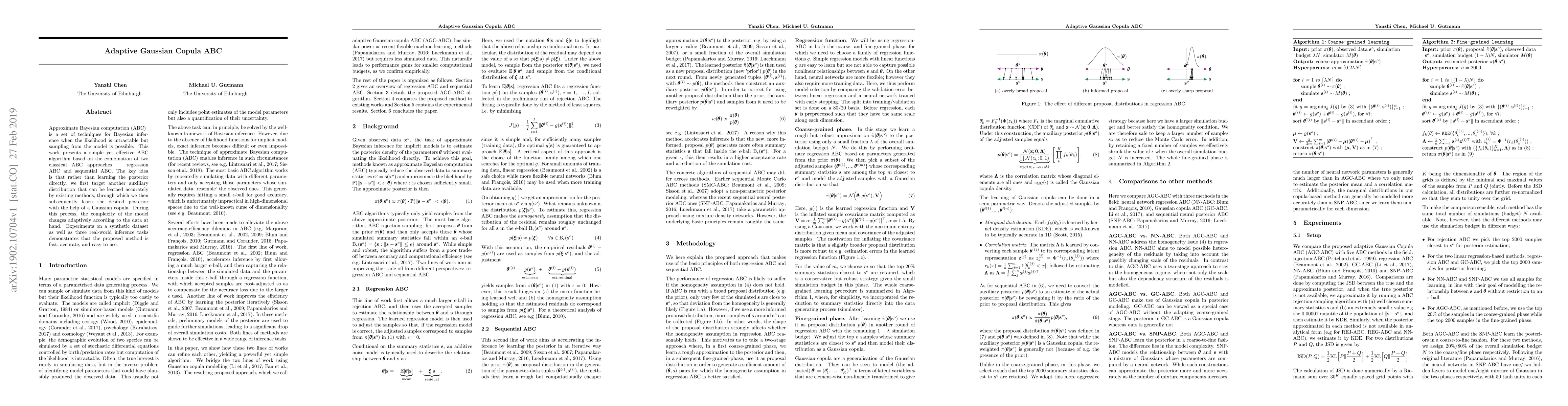 Approximate Bayesian computation (ABC) is a set of techniques for Bayesian inference when the likelihood is intractable but sampling from the model is possible. This work presents a simple yet effective ABC algorithm based on the combination of two classical ABC approaches --- regression ABC and sequential ABC. The key idea is that rather than learning the posterior directly, we first target another auxiliary distribution that can be learned accurately by existing methods, through which we then subsequently learn the desired posterior with the help of a Gaussian copula. During this process, the complexity of the model changes adaptively according to the data at hand. Experiments on a synthetic dataset as well as three real-world inference tasks demonstrates that the proposed method is fast, accurate, and easy to use.