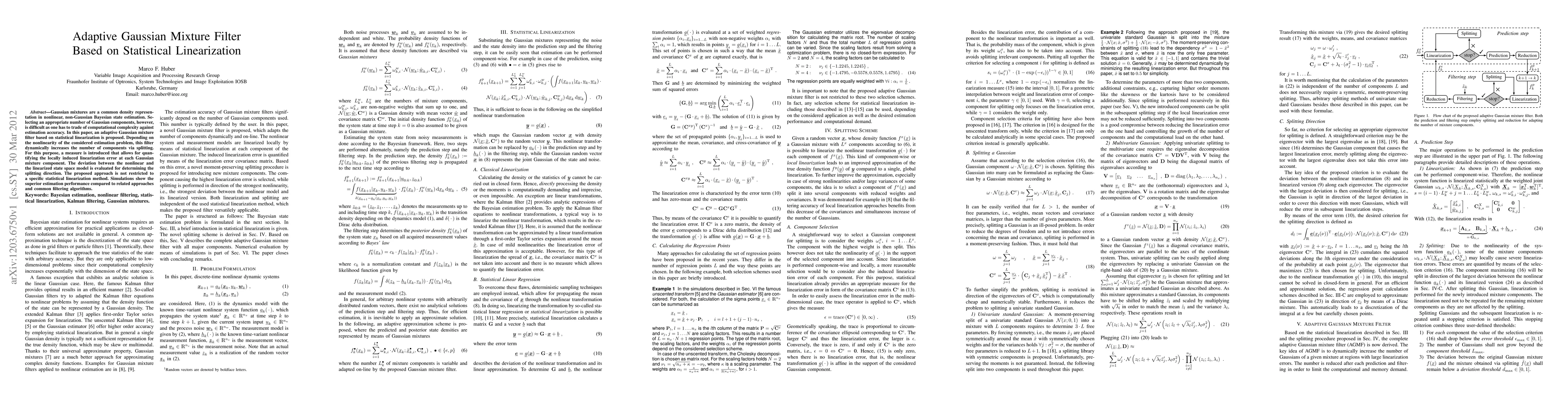 This paper proposes an adaptive Gaussian mixture filter that dynamically adjusts the number of components based on statistical linearization, improving estimation accuracy while managing computational complexity. The method introduces a measure to quantify linearization error, guiding component splitting to enhance performance, and demonstrates superior results in simulations.