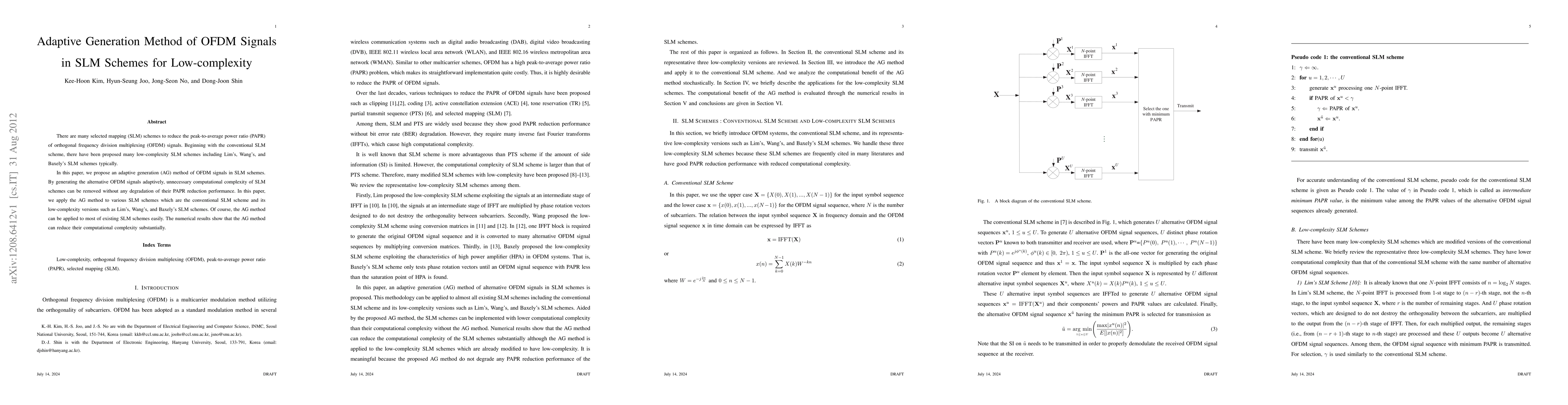 This paper proposes an adaptive generation (AG) method to optimize selected mapping (SLM) schemes for reducing the peak-to-average power ratio (PAPR) of OFDM signals, achieving significant computational complexity reduction without compromising PAPR reduction performance. The AG method is applied to conventional and low-complexity SLM schemes, demonstrating substantial efficiency improvements.