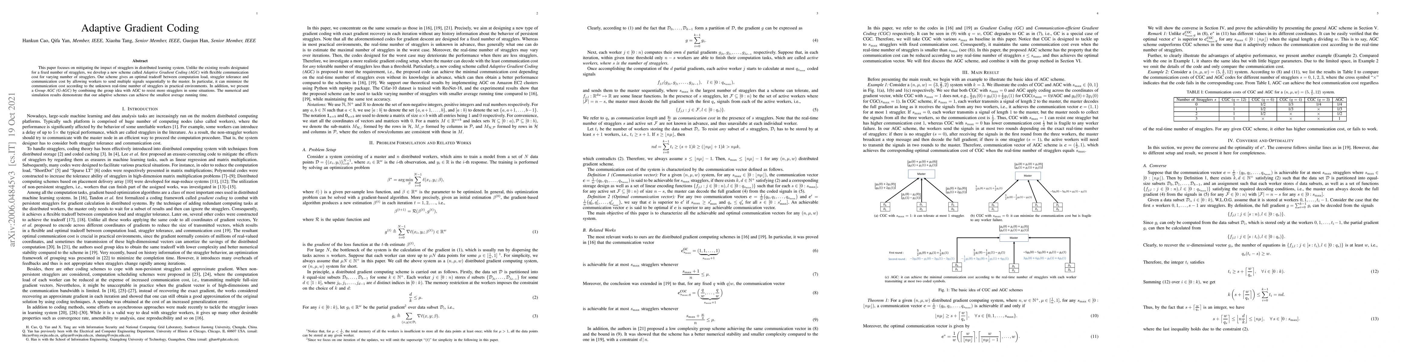 This paper focuses on mitigating the impact of stragglers in distributed learning system. Unlike the existing results designed for a fixed number of stragglers, we developed a new scheme called Adaptive Gradient Coding(AGC) with flexible tolerance of various number of stragglers. Our scheme gives an optimal tradeoff between computation load, straggler tolerance and communication cost. In particular, it allows to minimize the communication cost according to the real-time number of stragglers in the practical environments. Implementations on Amazon EC2 clusters using Python with mpi4py package verify the flexibility in several situations.