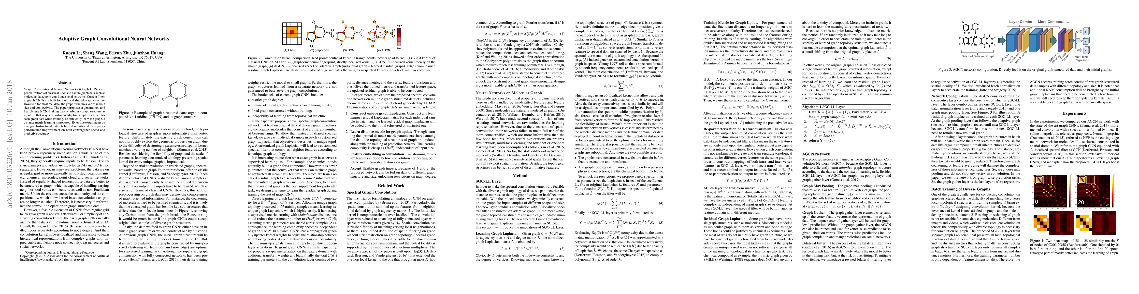 This paper proposes an adaptive Graph Convolutional Neural Network (Graph CNN) that can handle variable graph structures by learning task-driven adaptive graphs during training. The approach employs distance metric learning for efficient graph adaptation, showing improved convergence speed and predictive accuracy across nine graph datasets.