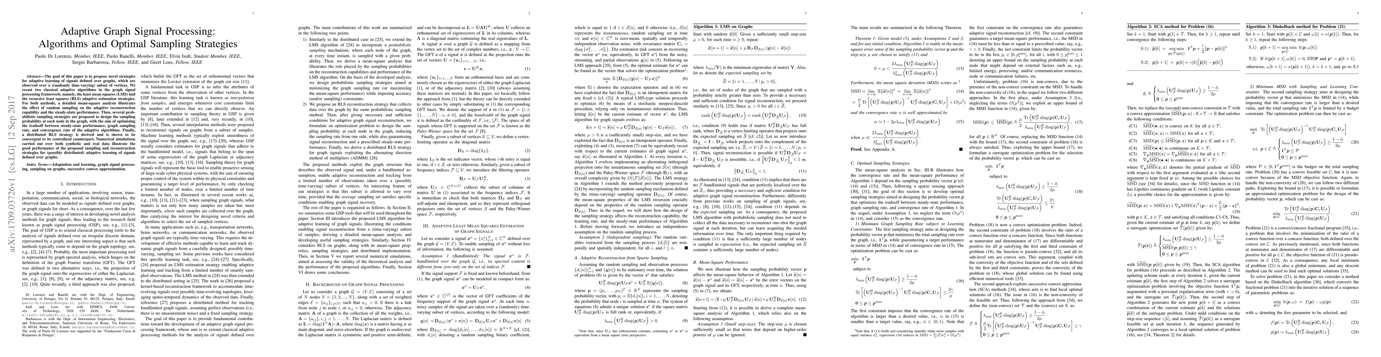 This paper proposes adaptive algorithms for learning graph signals observed over varying subsets of vertices, analyzing the impact of random sampling on performance. It introduces optimal sampling strategies to balance steady-state performance, sampling rate, and convergence rate, and demonstrates the effectiveness through simulations on both synthetic and real data.