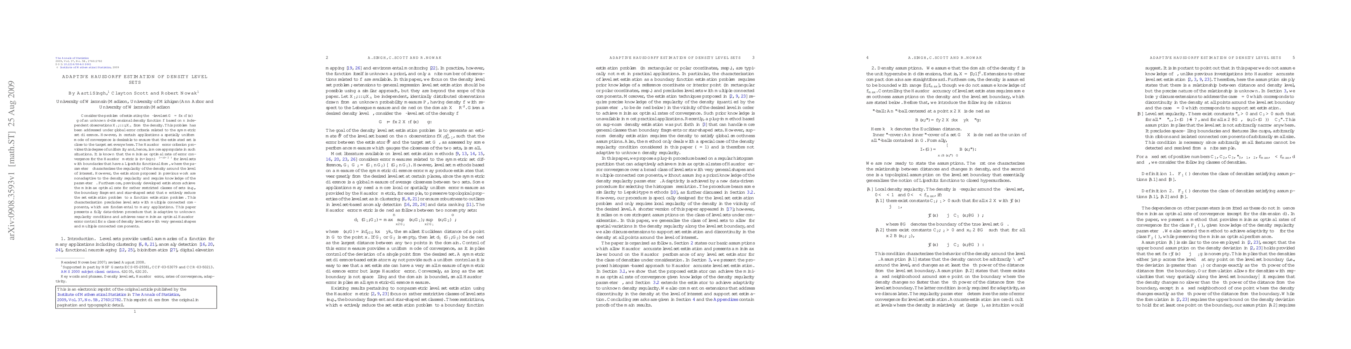 This research is significant as it addresses the need for a more uniform and adaptive approach to estimating density level sets, which is crucial in various applications where spatially uniform convergence is desired.