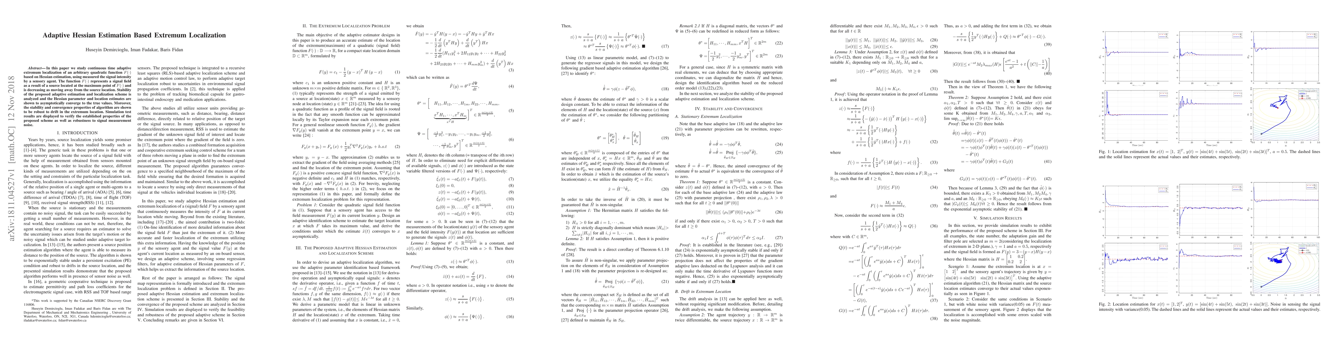 Researchers developed an adaptive method to locate a source of a quadratic signal based on Hessian estimation, showing it converges to the true location even with noise and drift.