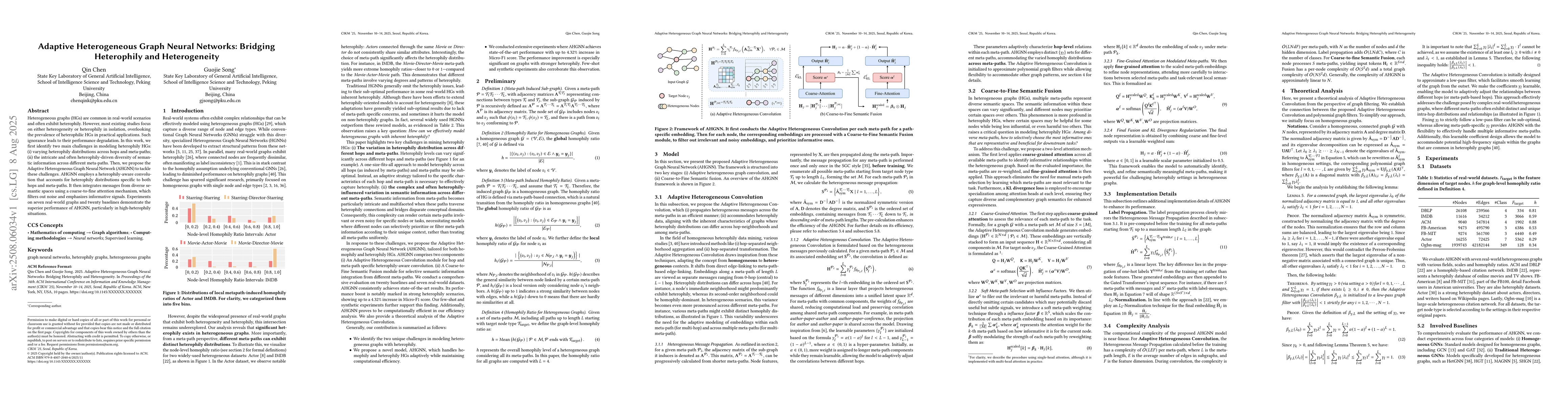 Heterogeneous graphs (HGs) are common in real-world scenarios and often exhibit heterophily. However, most existing studies focus on either heterogeneity or heterophily in isolation, overlooking the prevalence of heterophilic HGs in practical applications. Such ignorance leads to their performance degradation. In this work, we first identify two main challenges in modeling heterophily HGs: (1) varying heterophily distributions across hops and meta-paths; (2) the intricate and often heterophily-driven diversity of semantic information across different meta-paths. Then, we propose the Adaptive Heterogeneous Graph Neural Network (AHGNN) to tackle these challenges. AHGNN employs a heterophily-aware convolution that accounts for heterophily distributions specific to both hops and meta-paths. It then integrates messages from diverse semantic spaces using a coarse-to-fine attention mechanism, which filters out noise and emphasizes informative signals. Experiments on seven real-world graphs and twenty baselines demonstrate the superior performance of AHGNN, particularly in high-heterophily situations.