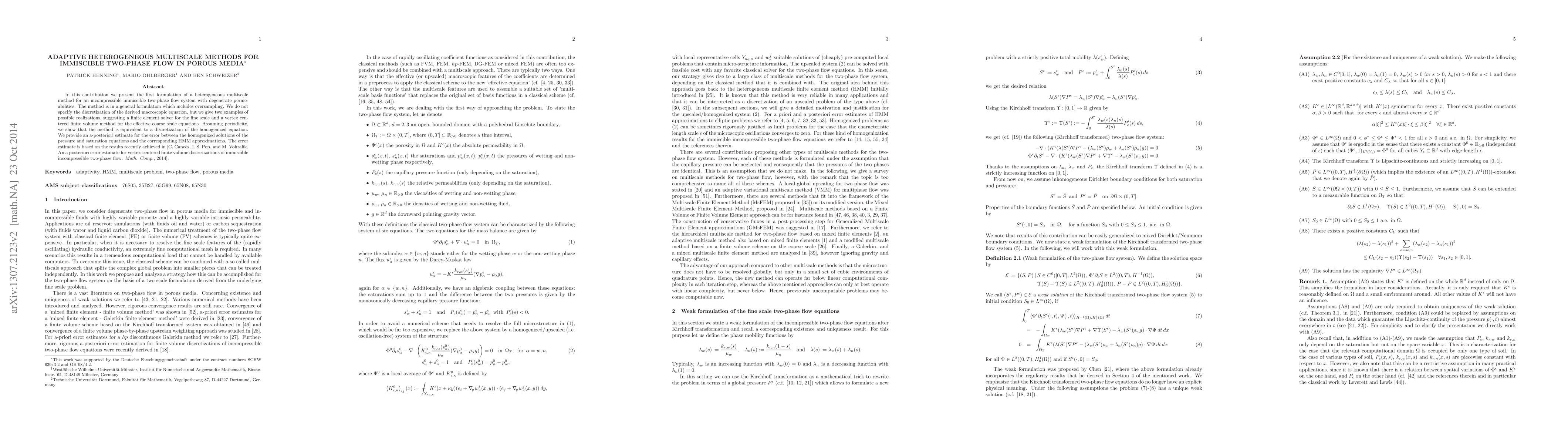 This paper introduces a novel heterogeneous multiscale method for modeling immiscible two-phase flow in porous media with varying permeability, including oversampling. It provides an a-posteriori error estimate for the method and suggests finite element and finite volume solvers for different scales.