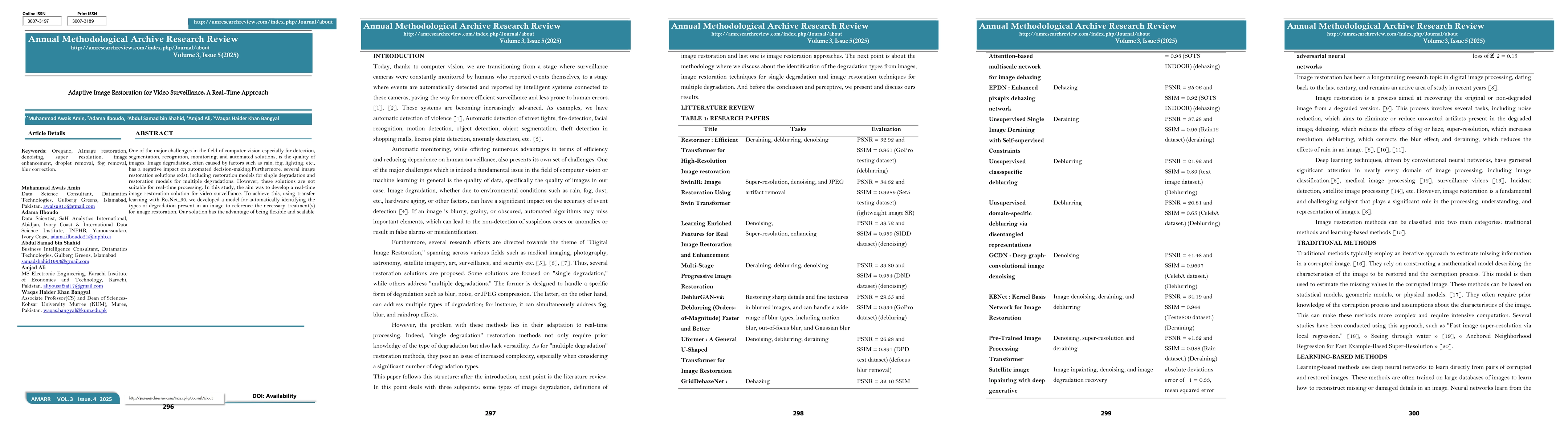 The research employed transfer learning with ResNet_50 to develop a model for automatic degradation identification in images for real-time restoration in video surveillance.