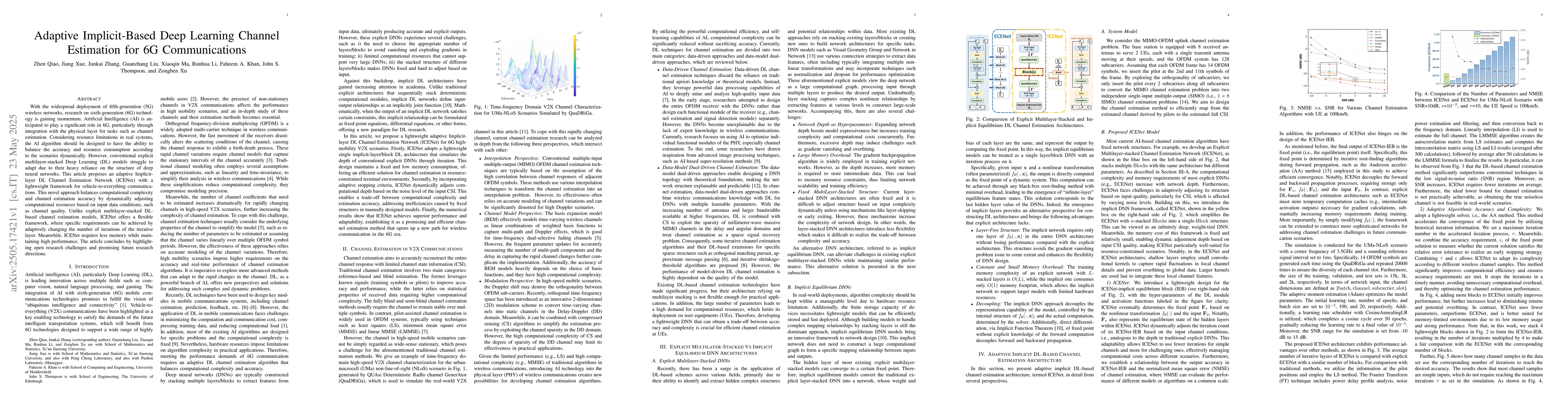 With the widespread deployment of fifth-generation (5G) wireless networks, research on sixth-generation (6G) technology is gaining momentum. Artificial Intelligence (AI) is anticipated to play a significant role in 6G, particularly through integration with the physical layer for tasks such as channel estimation. Considering resource limitations in real systems, the AI algorithm should be designed to have the ability to balance the accuracy and resource consumption according to the scenarios dynamically. However, conventional explicit multilayer-stacked Deep Learning (DL) models struggle to adapt due to their heavy reliance on the structure of deep neural networks. This article proposes an adaptive Implicit-layer DL Channel Estimation Network (ICENet) with a lightweight framework for vehicle-to-everything communications. This novel approach balances computational complexity and channel estimation accuracy by dynamically adjusting computational resources based on input data conditions, such as channel quality. Unlike explicit multilayer-stacked DL-based channel estimation models, ICENet offers a flexible framework, where specific requirements can be achieved by adaptively changing the number of iterations of the iterative layer. Meanwhile, ICENet requires less memory while maintaining high performance. The article concludes by highlighting open research challenges and promising future research directions.