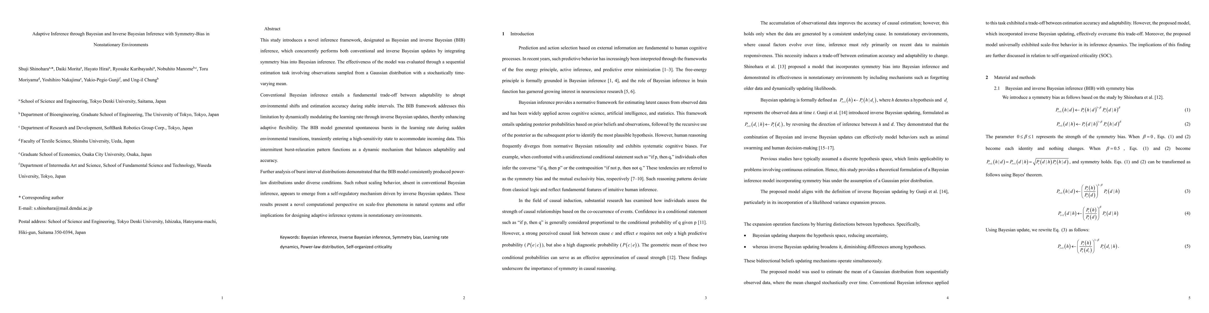 The research introduces a novel inference framework, Bayesian and inverse Bayesian (BIB) inference, which integrates symmetry bias into Bayesian inference to dynamically modulate learning rates via inverse Bayesian updates, enhancing adaptability in nonstationary environments.