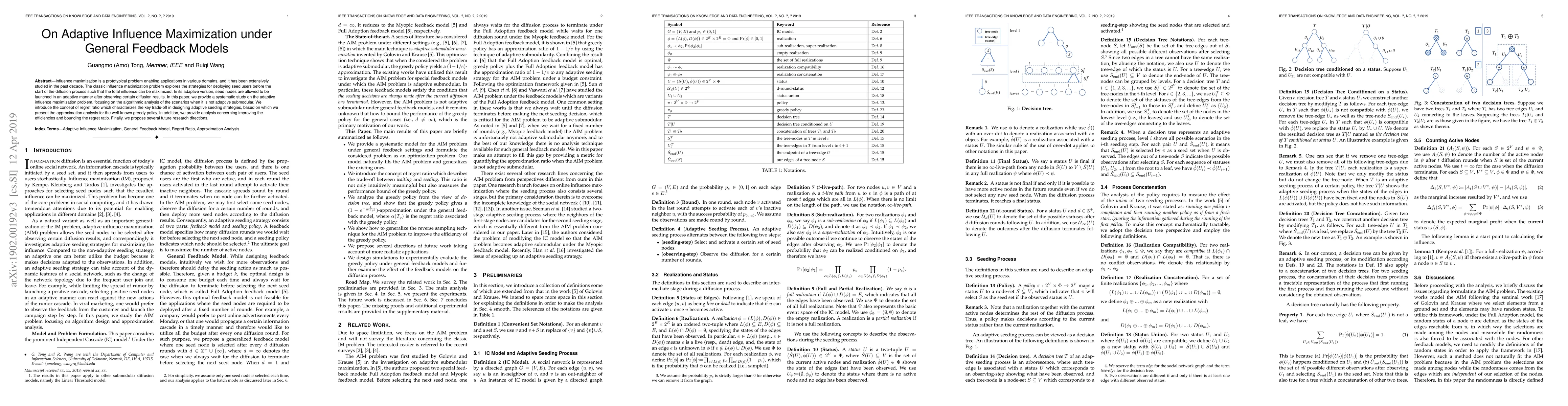 Influence maximization is a prototypical problem enabling applications in various domains, and it has been extensively studied in the past decade. The classic influence maximization problem explores the strategies for deploying seed users before the start of the diffusion process such that the total influence can be maximized. In its adaptive version, seed nodes are allowed to be launched in an adaptive manner after observing certain diffusion results. In this paper, we provide a systematic study on the adaptive influence maximization problem, focusing on the algorithmic analysis of the scenarios when it is not adaptive submodular. We introduce the concept of regret ratio which characterizes the key trade-off in designing adaptive seeding strategies, based on which we present the approximation analysis for the well-known greedy policy. In addition, we provide analysis concerning improving the efficiencies and bounding the regret ratio. Finally, we propose several future research directions.